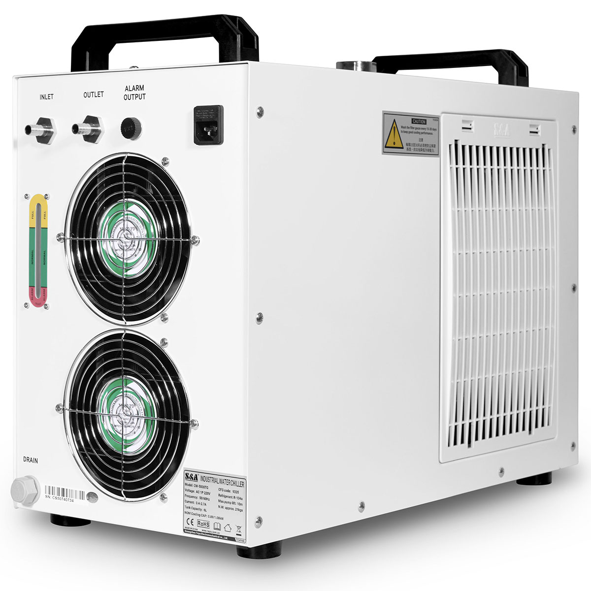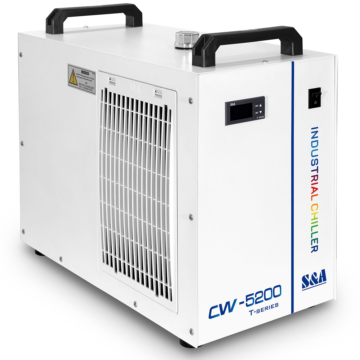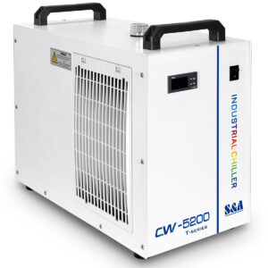 The Active Water Chiller is our refrigerated industrial chiller designed to keep precision cooling. Compressor pumps water through glass tubes at temperatures as low as 41 degrees Fahrenheit (5 C). The result is consistent high power and extended life for higher wattage laser tubes. Recommended for tubes of 70 to 155 watts.