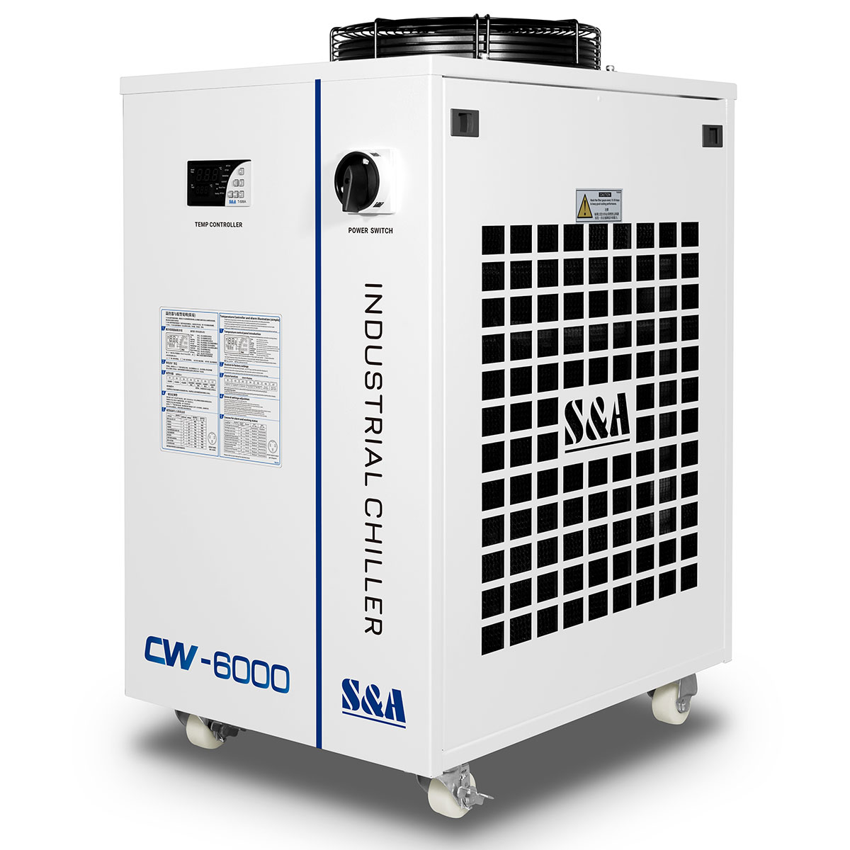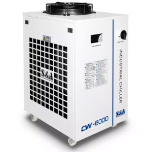 The CW-6000 is our refrigerated industrial chiller designed to cool higher powered laser machines. Multi-alarm functionality includes compressor time-delay and surge protection.