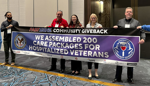 During the convention, the Boss Laser Team was also able to participate in the FASTSIGNS Community Giveback event for an interactive, team-building experience to prepare care packages for veterans hospitalized at The North Las Vegas VA Medical Center. Each veteran will receive a ‘Thank You for Your Service’ drawstring bag filled with playing cards, puzzle/game books, fuzzy socks, denture cream, shampoo, conditioner, toothbrush, and toothpaste. We are so thankful we were able to co-sponsor this event!