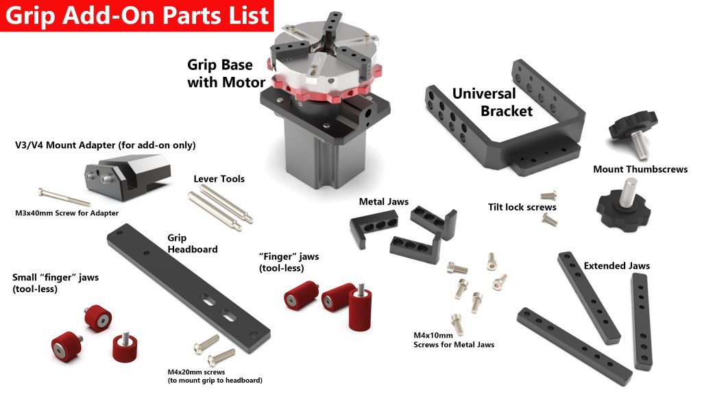 - The jaws are interchangeable, so you can configure the Grip to.. well.. grip anything you can imagine!
